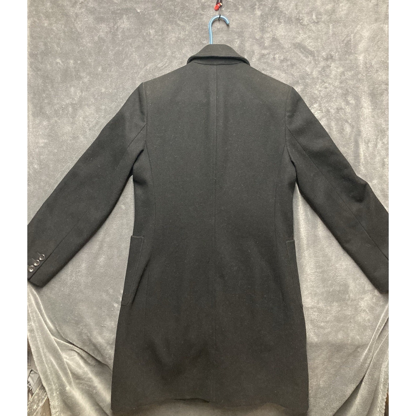 The product is a vintage J.CREW peacoat for women in size small, made from a black wool blend material. This classic coat from the 1990s exudes a secretary/geek look, making it a timeless piece for any wardrobe. Perfect for adding a touch of vintage charm to any outfit, this long coat is both stylish and versatile.